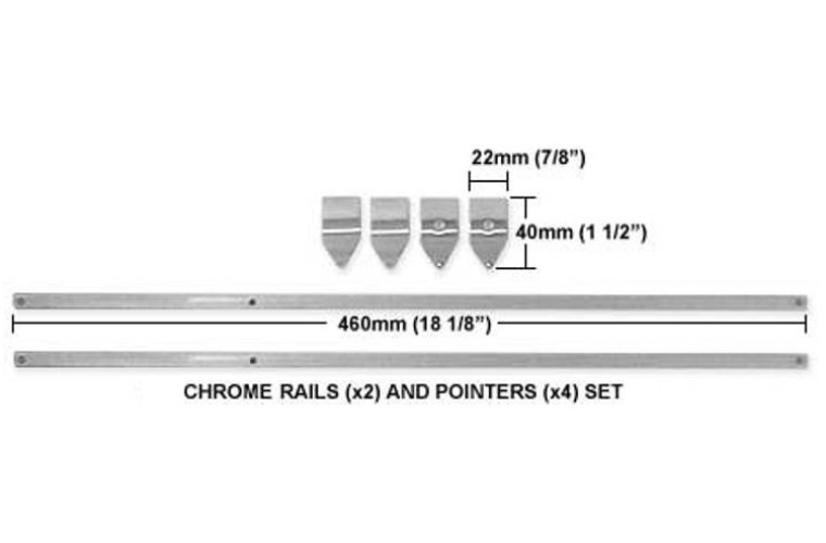 RAILS & POINTERS CHROME SETS INCLUDES 2 X 450MM RAILS AND 4 MARKERS
