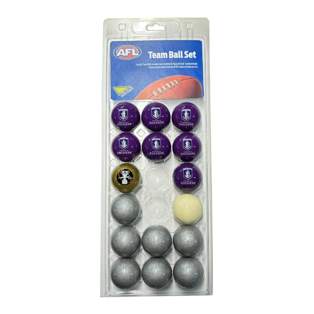AFL 16 BALL SET FREMANTLE DOCKERS V COLOUR SILVER MADE BY ARAMITH