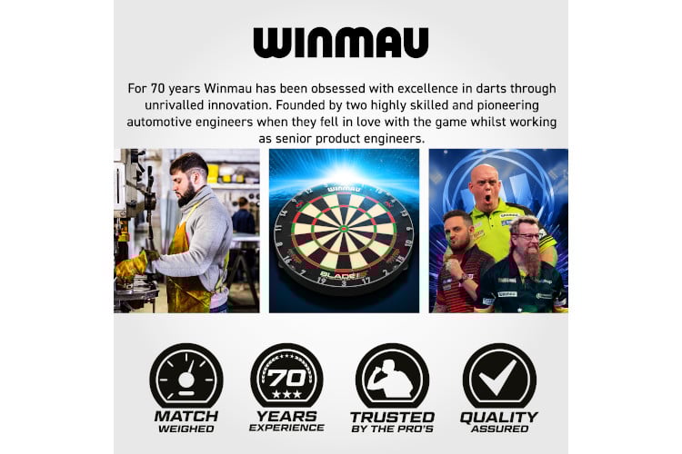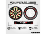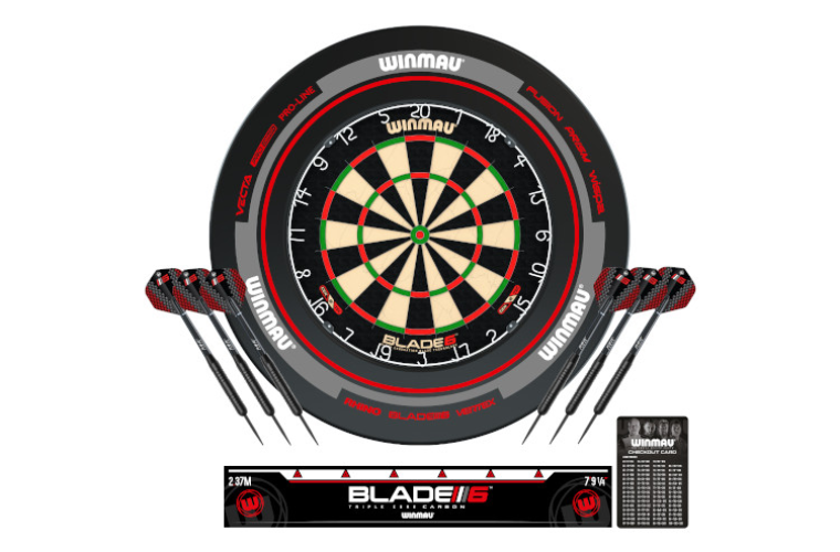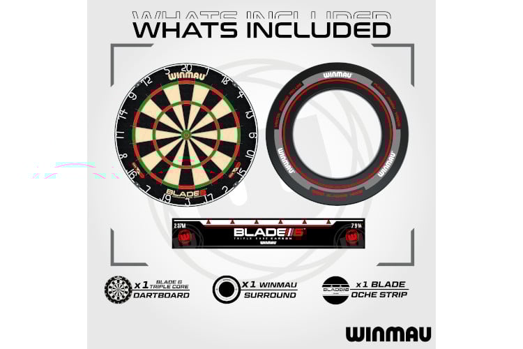 WINMAU BLADE 6 BUNDLE STEEL SURROUND + OCHE + 2 SETS BLACK STEEL DARTS 19G