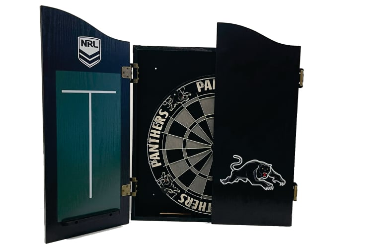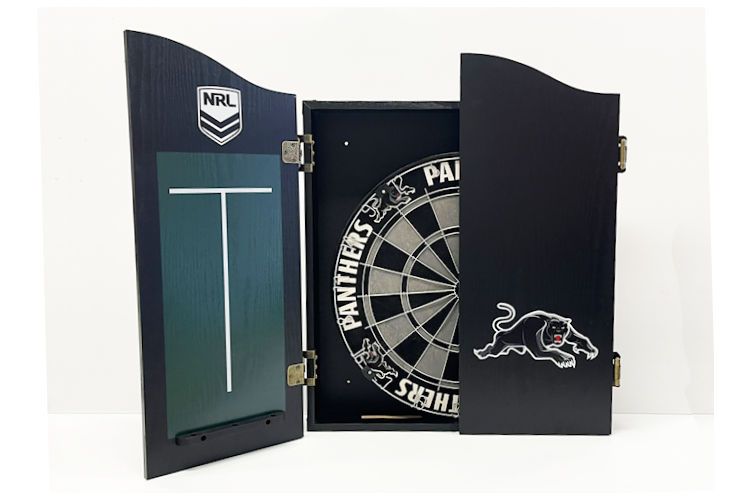 NRL DARTBOARD + CABINET PANTHE PENRITH COMBO AVAILABLE IN ALL 16 TEAMS