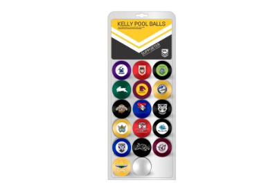 NRL 16 BALL KELLY POOL SET 2" 1 BALL FROM EACH TEAM INCLUDES MARBLES AND SHAKER